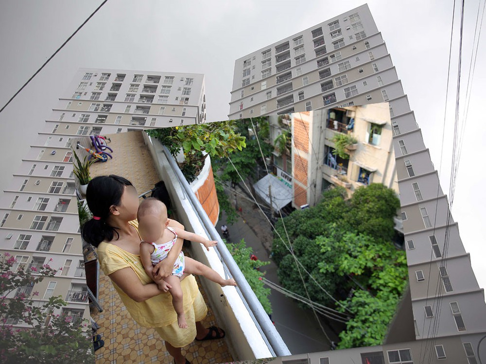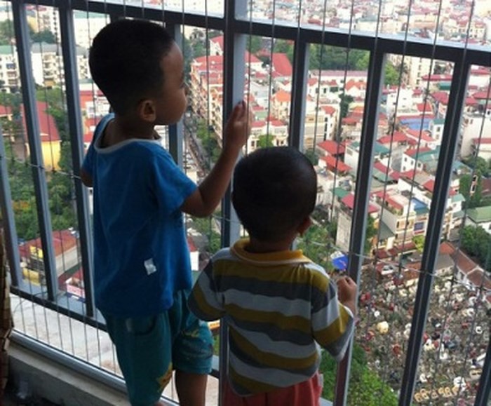 Cẩn thận khi cho trẻ em tiếp cận lan can, ban công tại các khu chung cư cân hộ cao tầng.