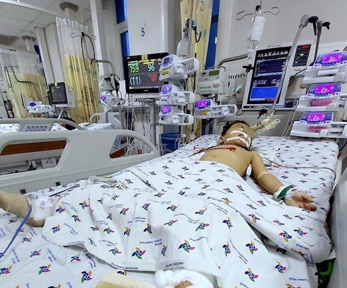 Thời điểm nhập viện, dù tỉnh nhưng bé trai rơi vào tình trạng hoảng loạn. Bé bị gãy và biến dạng xương cánh tay và chân phải có vết thương, diễn tiến tri giác không ổn định, suy hô hấp dần…