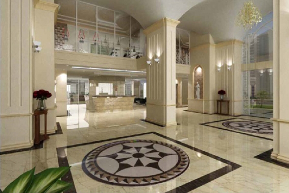 * Sảnh trệt: được thiết kế theo phong cách tân cổ điển Pháp với trần nhà hình vòng cung, chiều cao 6m tạo nên 1 khung cảnh sang trọng và tráng lệ, với quầy tiếp tân có thư kí phục vụ chu đáo, bảo vệ túc trực 24/24, khu tiếp khách có ghế salon, các bạn có thể tiếp khách hoặc bạn bè của mình nếu như không muốn trực tiếp lên căn hộ.