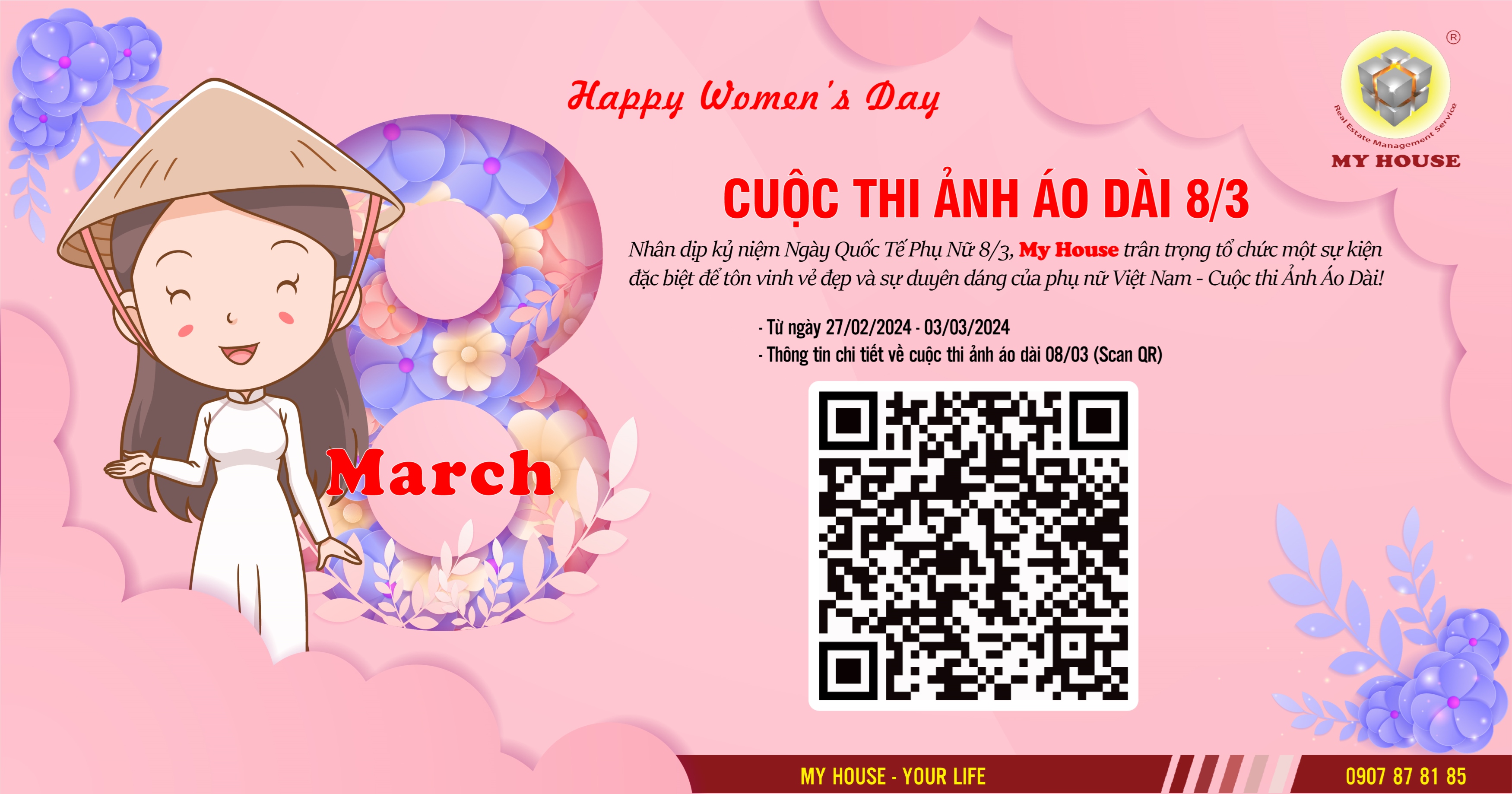 - Nhân dịp kỷ niệm Ngày Quốc Tế Phụ Nữ 8/3, My House trân trọng tổ chức một sự kiện đặc biệt để tôn vinh vẻ đẹp và sự duyên dáng của phụ nữ Việt Nam - Cuộc thi Ảnh Áo Dài!