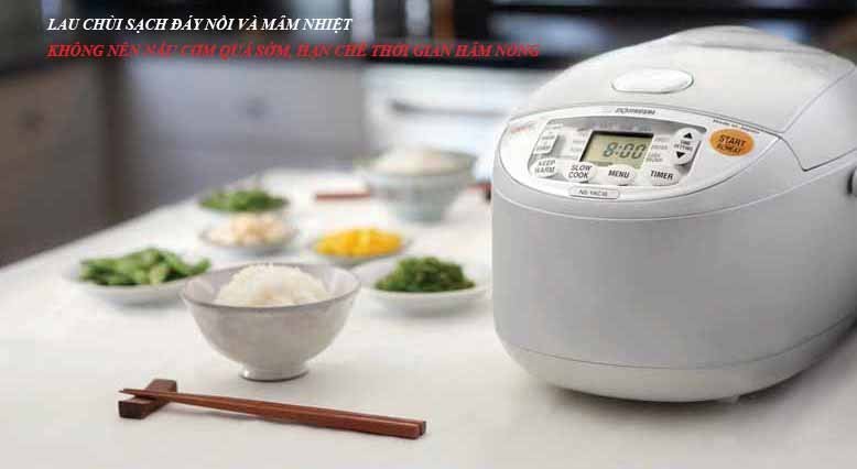 - KHÔNG nên nấu cơm quá sớm, chỉ nên nấu cơm trước khi ăn khoảng 30 đến 45 phút để hạn chế thời gian hâm nóng.