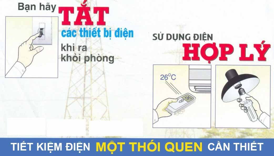 - Rút nguồn các thiết bị điện tử khi không sử dụng: TV, máy tính, dán âm thanh, tắt bớt đèn khi trời sáng, tắt quạt và điều hòa vào sáng sớm để tận dụng gió mát đầu ngày.