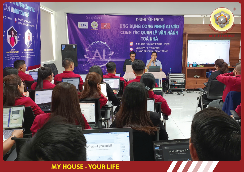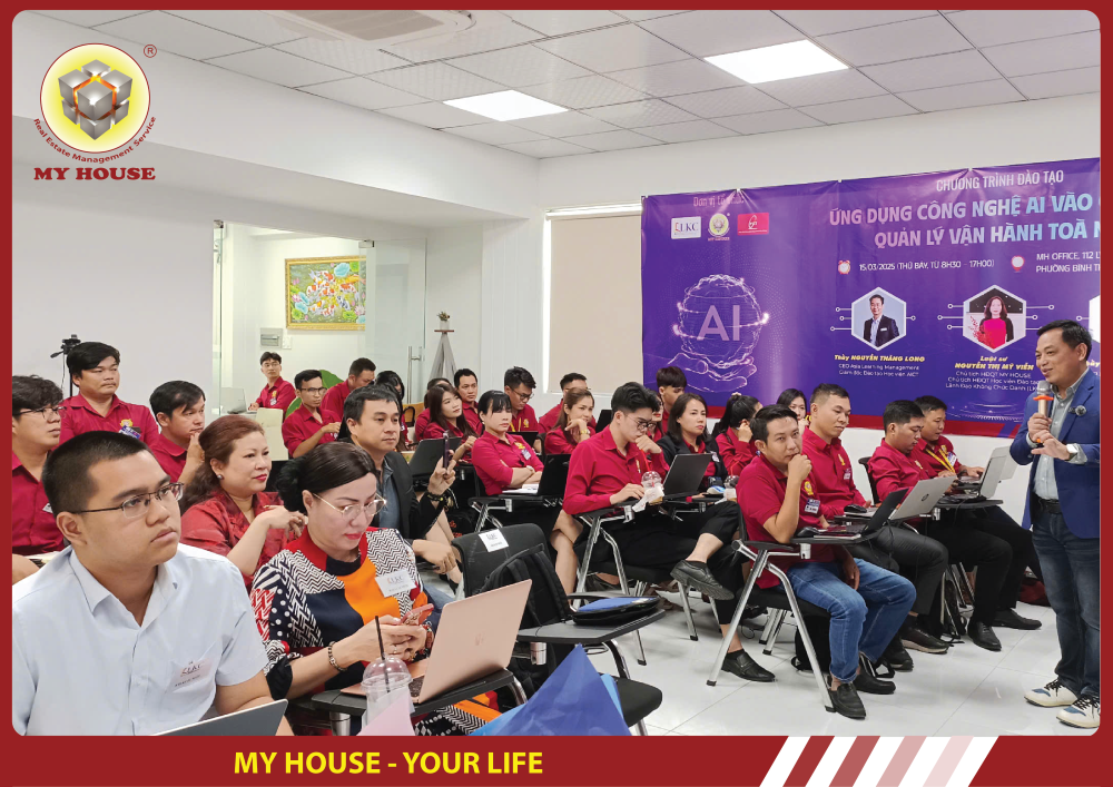 Hưởng ứng tinh thần chuyển đổi số và tiên phong trong việc ứng dụng công nghệ trí tuệ nhân tạo vào Công tác Quản lý vận hành tòa nhà, MY HOUSE đã phối hợp với Học viện Đào tạo Lãnh đạo LKC và Học viện Công nghệ Bưu Chính Viễn Thông cơ sở TPHCM tổ chức thành công khóa học "ỨNG DỤNG CÔNG NGHỆ AI TRONG CÔNG TÁC QUẢN LÝ VẬN HÀNH TÒA NHÀ - LẦN I".