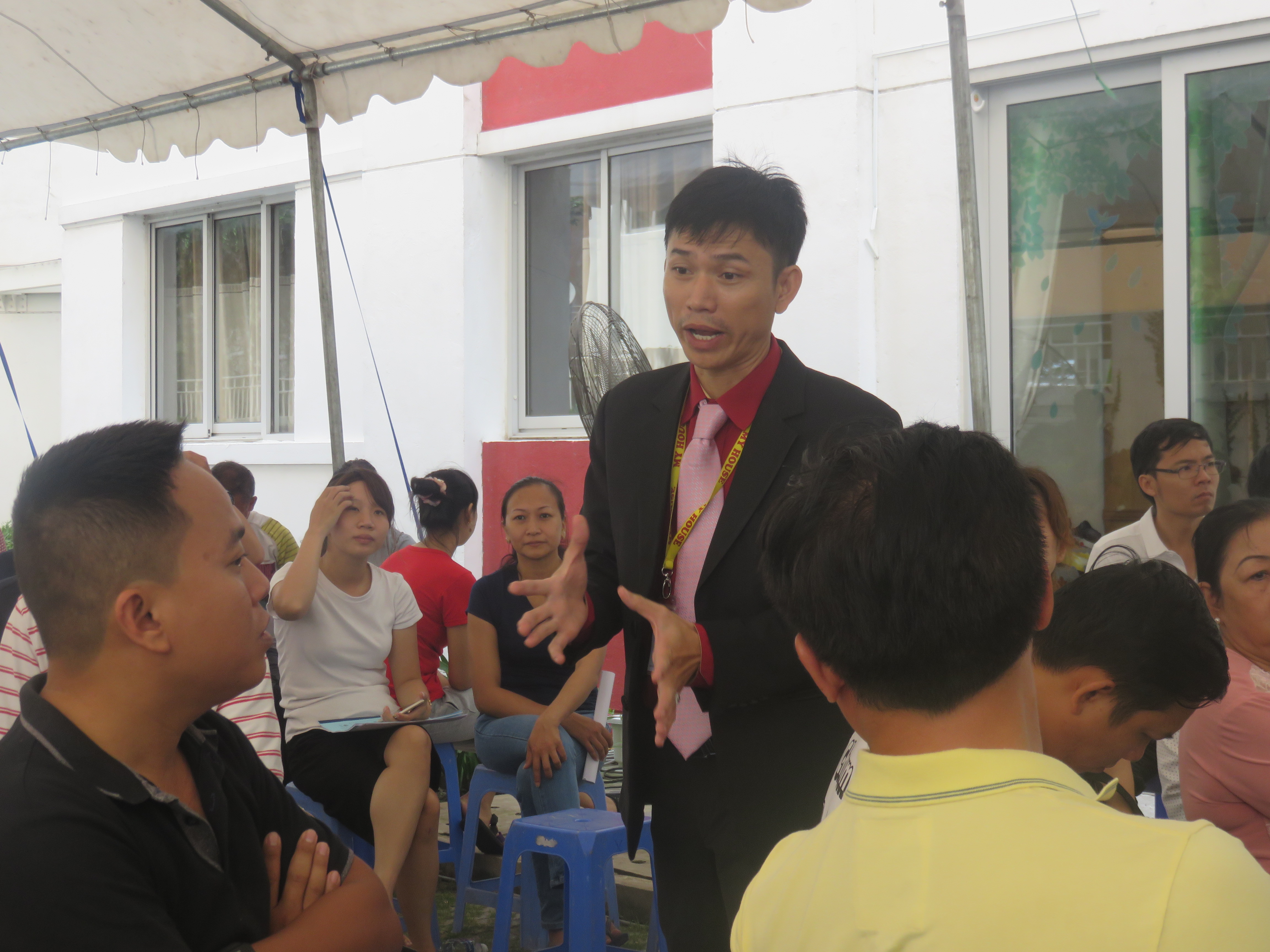 Đại diện Ban Quản lý hỗ trợ trao đổi cư dân về việc bỏ phiếu bầu cử
