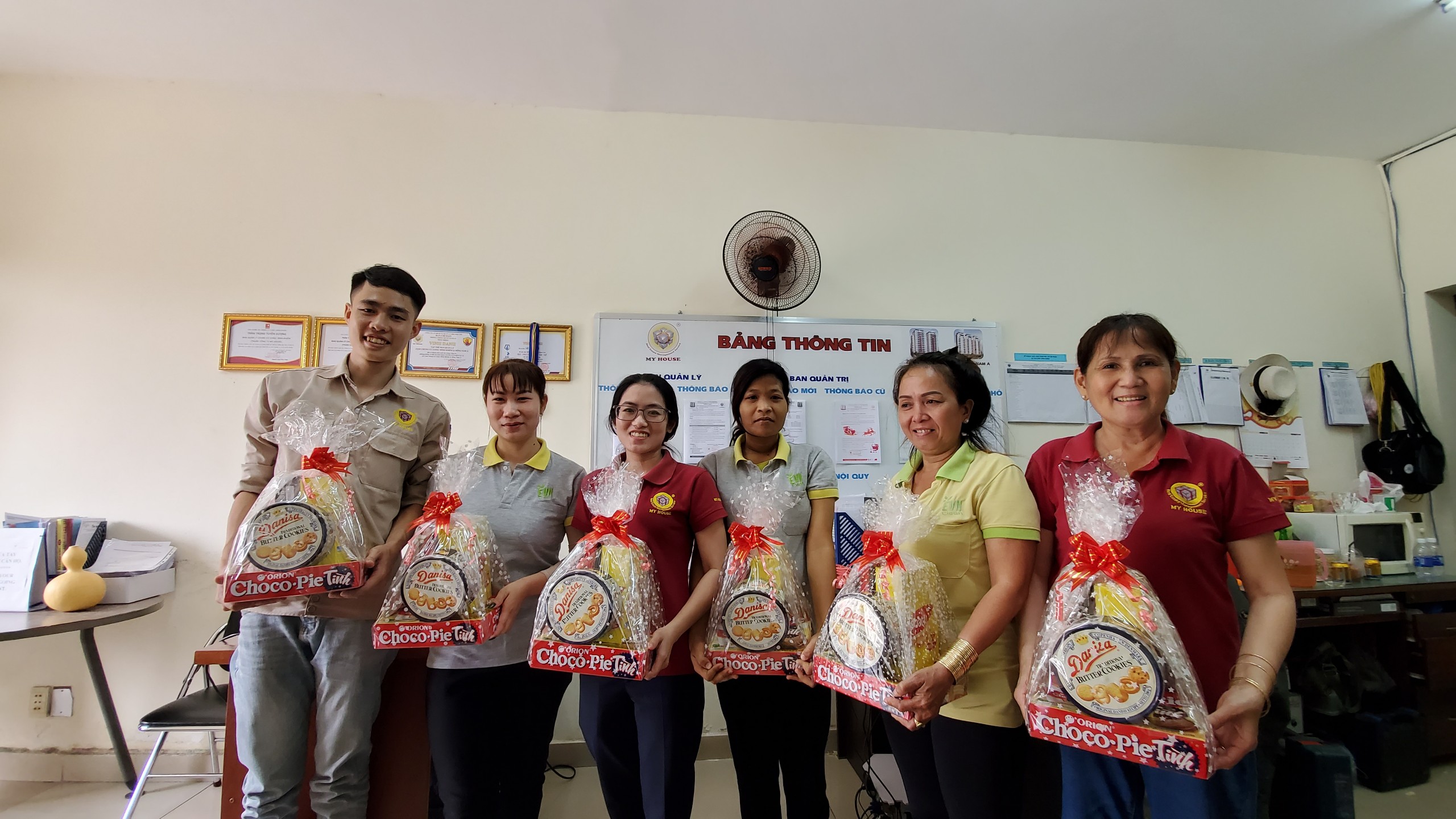 Vào các dịp lễ, Tết, ngoài việc tổ chức trang trí chung cư để nâng cao đời sống tinh thần cho cộng đồng cư dân, MY HOUSE luôn quan tâm đến việc chăm sóc đời sống vật chất cho Cán bộ Công nhân viên công ty.