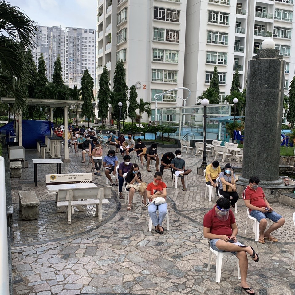 Nhiều ngày qua, dịch bệnh càng lúc càng phức tạp, mặc dừ BQL chung cư hết sức nghiêm ngặt tuân thủ 5K, cư dân thì vẫn luôn ở trong nhà, nhưng vẫn không tránh khỏi nỗi lo lắng nhiễm bệnh. Khi mọi người nghe tin toàn chung cư sẽ được tiêm vaccine, ai nấy cũng đều rất vui mừng và phấn khởi.