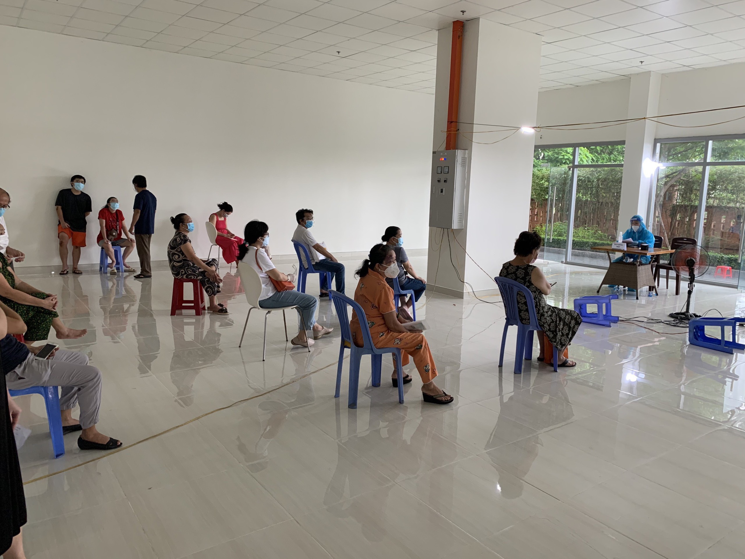 Cư dân đang ngồi chờ đến lượt.
