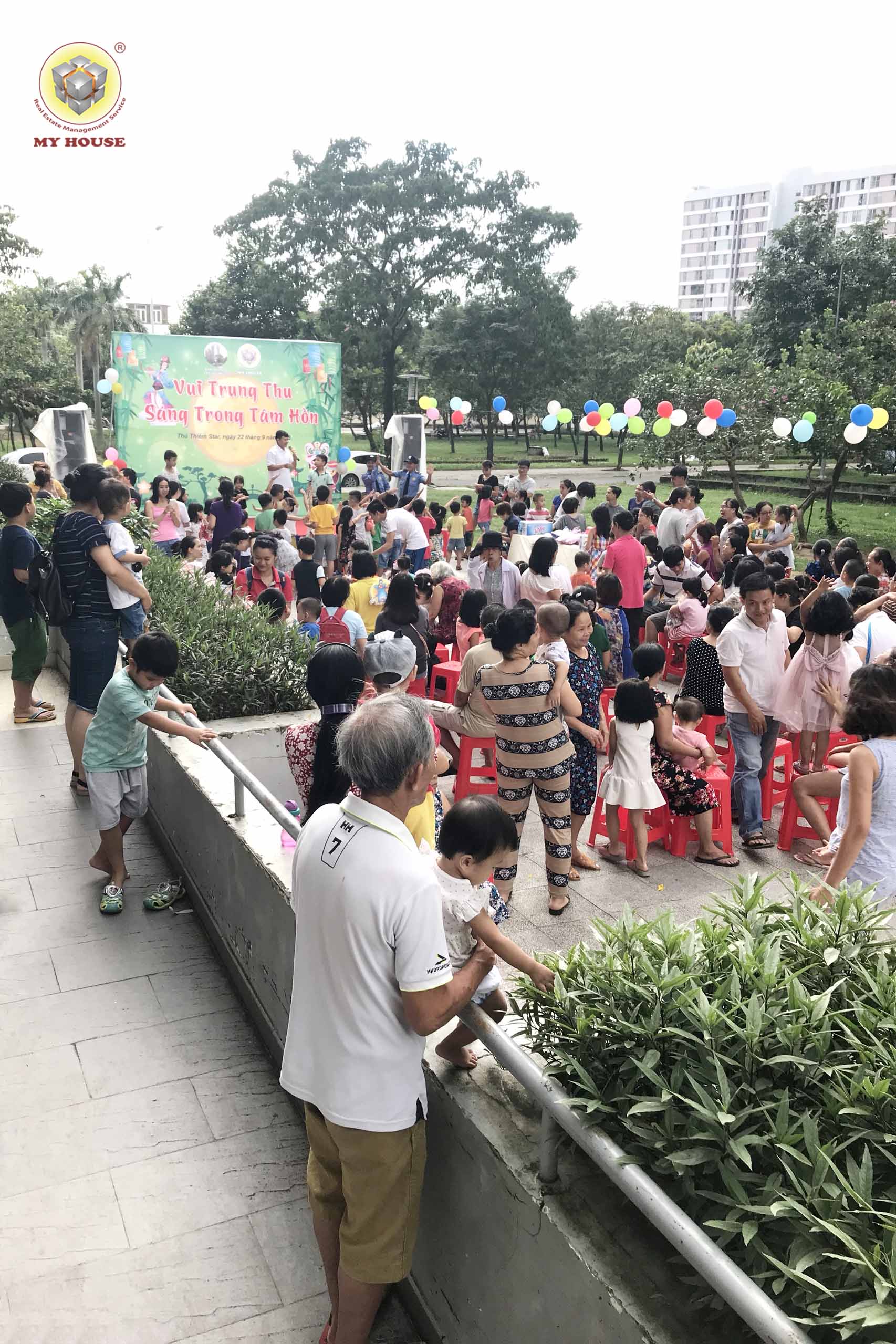 Với mong muốn đem lại sân chơi bổ ích, lành mạnh cho các cháu thiếu nhi đồng thời xây dựng nếp sống văn minh, giàu tình làng nghĩa xóm trong cộng đồng, từ ngày 21 đến ngày 24 tháng 9 vừa qua (tức mùng 12-15 tháng Tám âm lịch), Ban Quản lý MY HOUSE – đơn vị quản lý vận hành các chung cư đã phối hợp với Ban Quản trị tổ chức Chương trình Trung thu “Lễ hội Trăng rằm 2018” phục vụ cho các cháu thiếu nhi và Quý cư dân tại các chung cư: Cụm chung cư CitiHome, Khu căn hộ New Saigon, Khu Dân cư Conic, Khu Dân cư Hạnh Phúc, Lotus Garden (Sen Xanh), Khu nhà ở GĐCB Quân Khu 7, Chung cư Thủ Thiêm Star, Bàu Cát II, Cộng Hòa Plaza, Lữ Gia Plaza, Thuận Việt Plaza, Âu Cơ Tower, ...