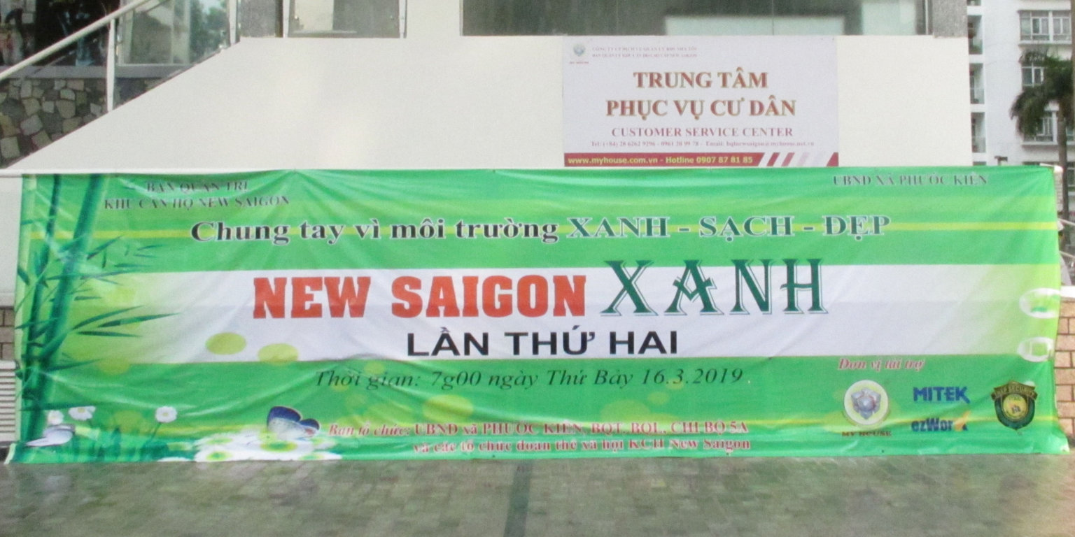 Chương trình "NEW SAIGON XANH Lần thứ 2" đã nhận được sự hưởng ứng và tham gia nhiệt tình của tình nguyện viên là cư dân và nhân viên của các đơn vị tài trợ như MY HOUSE, MITEK, EzWork, Bảo vệ TNXP với sự hỗ trợ của lực lượng quản lý đô thị, công an địa phương nhằm vệ sinh sạch sẽ, dọn dẹp ngăn nắp tại các khu vực tiện ích công cộng, tầng hầm và khuôn viên nội bộ cũng như vỉa hè bao quanh Khu căn hộ NEW SAIGON.