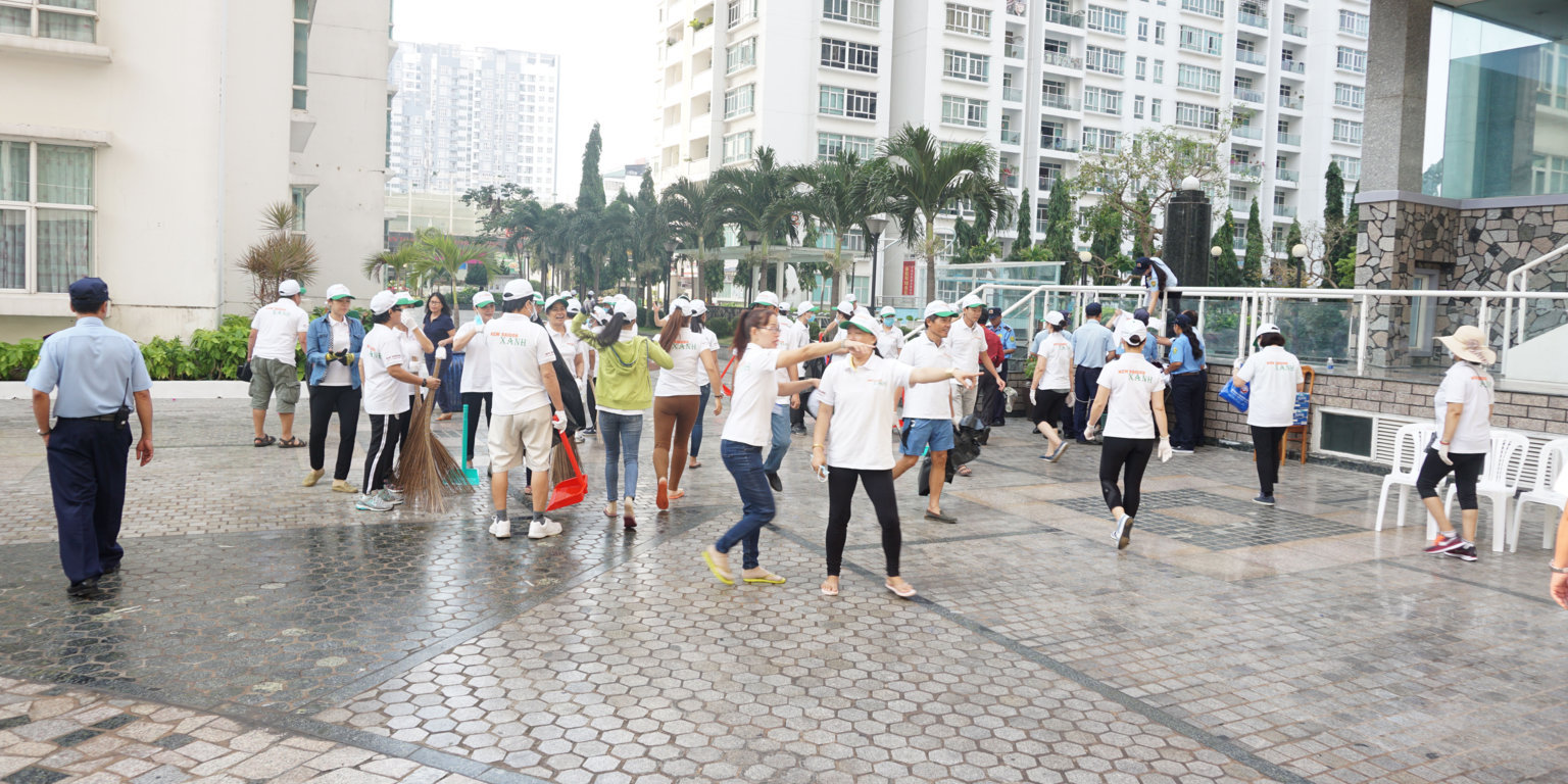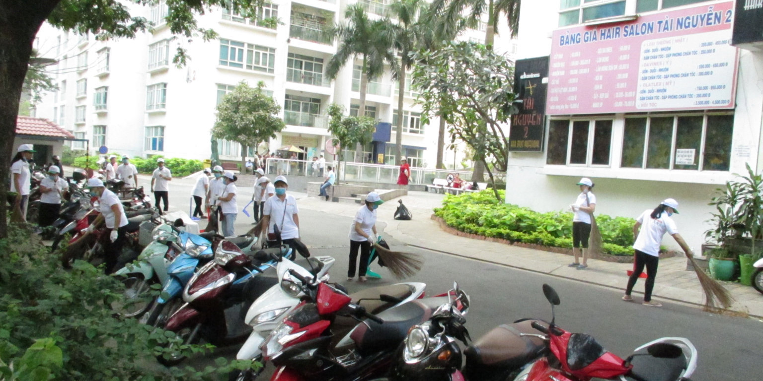 Kết quả trước và sau 4 giờ thực hiện chương trình: khuôn viên nội khu và xung quanh đã được dọn dẹp sạch sẽ, đem lại môi trường đáng sống cho cư dân nơi đây.