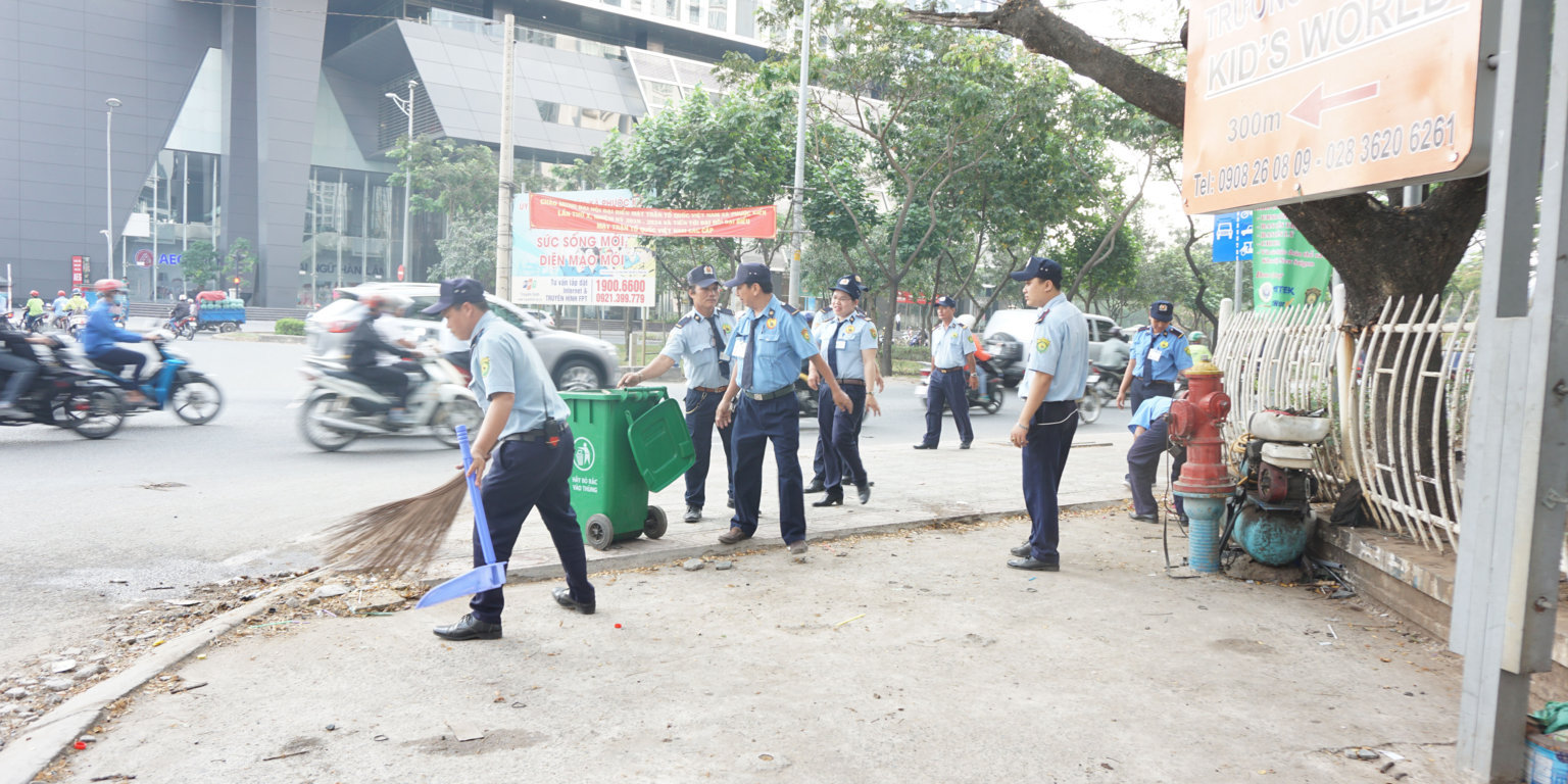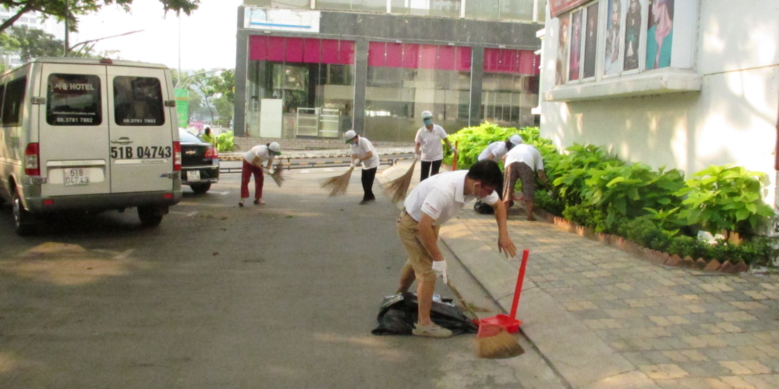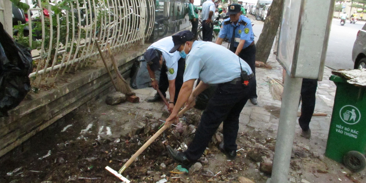 Dọn dẹp khu vực vỉa hè bên ngoài