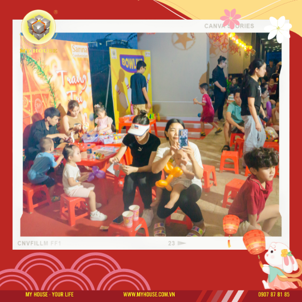 Vào ngày 28/09 (14/8 Âm lịch), dưới ánh trăng tròn, tại sân thượng tòa nhà SARINA đã tổ chức đêm hội Trung thu cho trẻ em và gia đình trong chung cư.